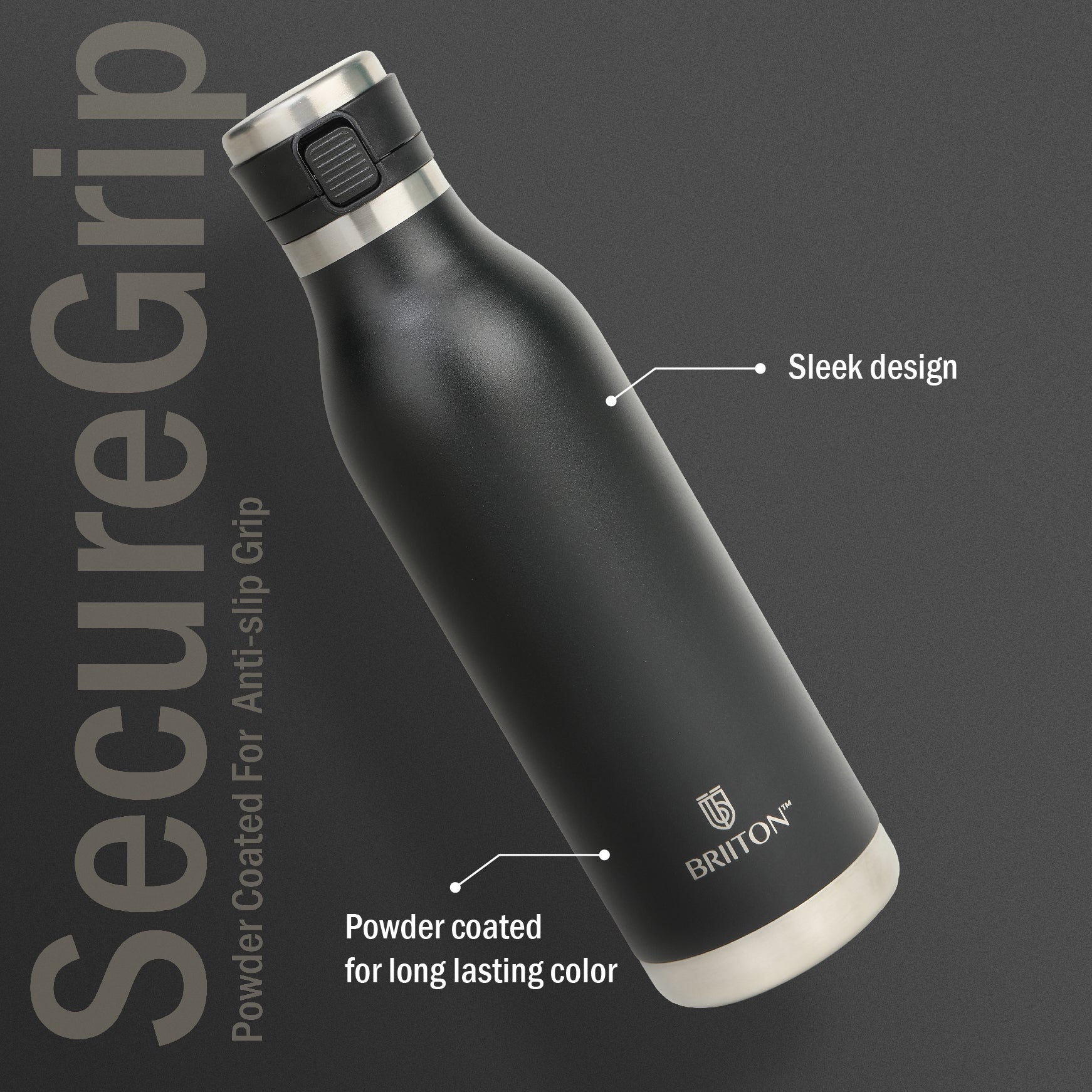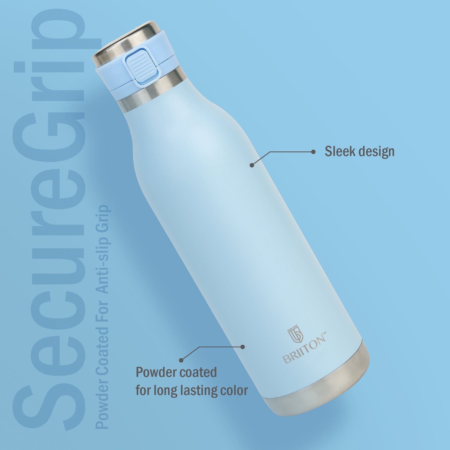 Powder-coated finish on the metal bottle ensures long-lasting color and durability