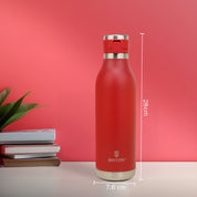 - The double wall vacuum insulated stainless steel water bottle maintains your drink's temperature for long hours